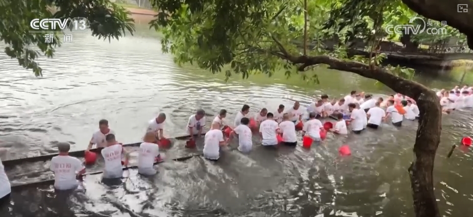 当天上午,泮塘村平易近们用锣鼓声“沉睡”的“老龙”。数十名村平易近齐心合力,将埋藏正在河底的龙船慢慢抬起。此次,起出的7条龙船,此中一条有400多年的汗青,是广州现存最陈旧的龙船之一。