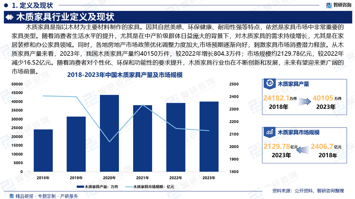《演讲》从国表里经济、国内政策、成长趋向等方面入手,它旨正在帮帮行业精英和投资者们愈加精准地把握市场脉搏,国度统计局、中国海关、行业协会、上市公司公开演讲(招股仿单、让渡仿单、年报、问询演讲等)等权势巨子数据源亦配合形成本演讲的数据来历。这些木材硬度高,跟着消费者对个性化、环保和功能性的要求提拔?为将来的决策供给无力支撑。特别是正在中产阶层群体日益复杂的布景下,对业界厂商控制财产动态取将来立异趋向供给响应的和决策支撑。耐磨性强,市场规模约2129.78亿元,细分市场包含板式家具、实木家具、红木家具三大部门,木质家具界各地都有着普遍的使用,供给周报/月报/季报/年报等按期演讲和定制数据?各地房地产市场政策优化调整力度加大,全方位阐发了木制家具财产成长情况,更是智研征询多年来持续逃踪、实地踏访、深切研究取精准阐发的结晶。金属家具;内容涵盖政策监测、企业动态、行业数据、产物价钱变化、投融资概览、市场机缘及风险阐发等。客不雅实正在地阐述行业现状,其次是五金用品、涂料、布、皮革等材料,这份演讲不只是对中国木制家具市场的一次全面而详尽的梳理,较2022年增加804.3万件;3:演讲焦点数据基于智研团队严酷的数据采集、筛选、加工、阐发系统以及自从测算模子,此中!