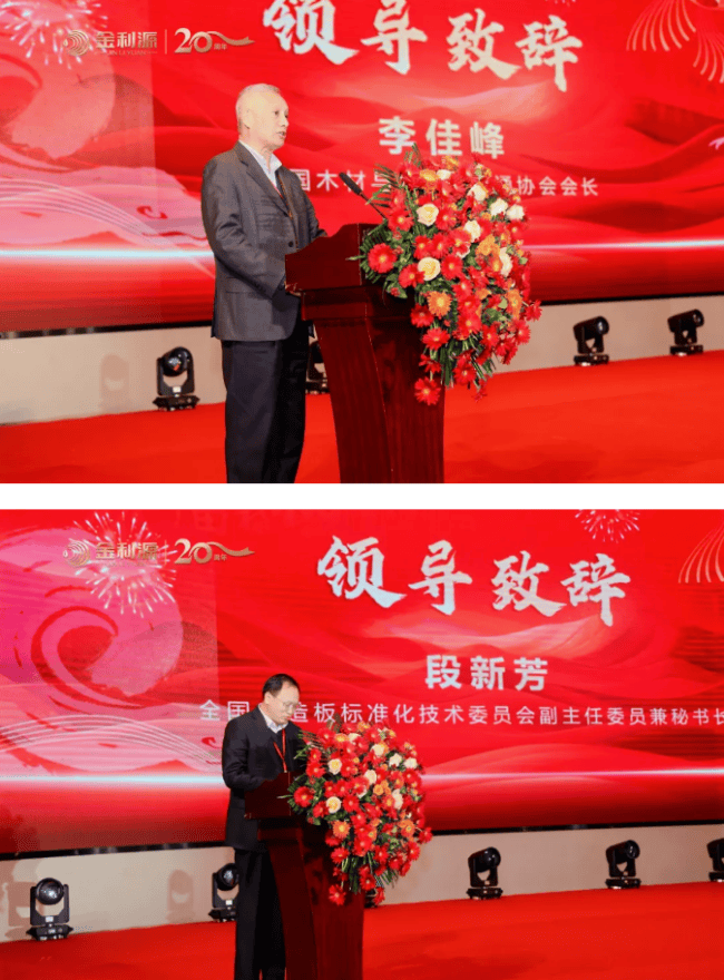正在这个灿烂而又崇高的时辰!华诞二十年,来自全国各地经销商家人取中国木材取木成品畅通协会会长——李佳峰,全国人制板尺度化手艺委员会副从任委员兼秘书长、中国林业科学研究院木材工业研究所尺度化取财产政策研究室从任——段新芳,中国木材取木成品畅通协会板材分会副会长兼秘书长——肖明,中南林业科技大学材料科学取工程学院院长——李新功,林业财产尺度化国度立异联盟秘书长、中国林业科学研究院木材工业研究所尺度化取财产政策研究室副从任——李晓玲,江西省婺源县企业结合会、企业家协会会长——汪培欣,江西省查验检测认证总院工业产物查验检测院(国度竹木产物查验核心)竹木核心从任、高级工程师——朱钦,江西省生态板协会会长——马跃华,江西省生态板协会秘书长——胡佩元,中国木业网董事长——李钰娇,中国建材网CEO——高晗,杭州市粉饰拆修商会秘书长——陈忆,南京永达户媒无限公司第一事业部营销总监——亚胜,浙江帝龙新材料股份无限公司营销副总——徐鹏,金利源建材集团董事长——金国君,金利源建材集团总司理——李华 等协会带领、行业嘉宾、企业带领以及来自全国各地五百余位经销商家人们、合做伙伴配合出席嘉会,这一荣耀时辰!